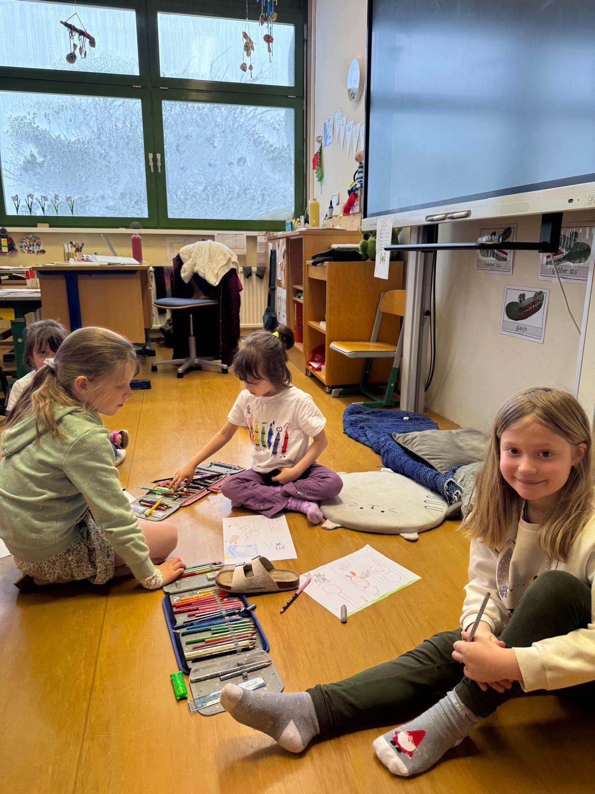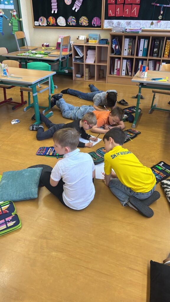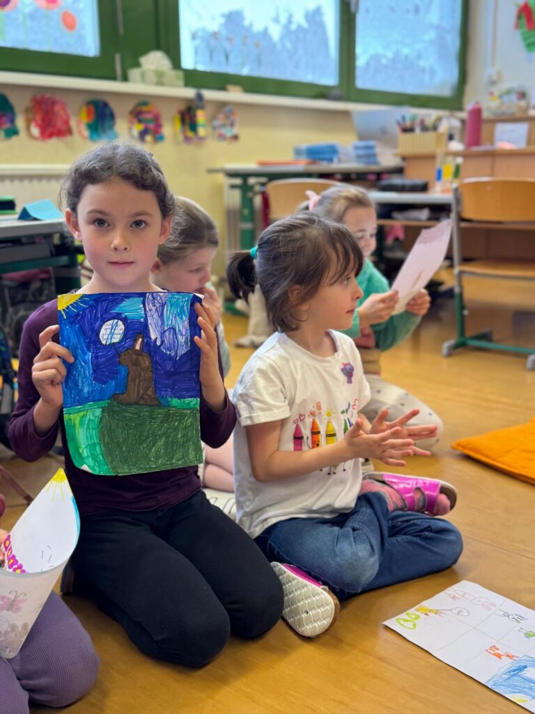 Trotz der besonderen Umstände wird im Schulhaus ruhig und konzentriert gearbeitet. Die Kinder zeigen sich sehr verantwortungsbewusst und engagiert – und gerade heute entstehen besonders schöne gemeinsame Arbeiten.