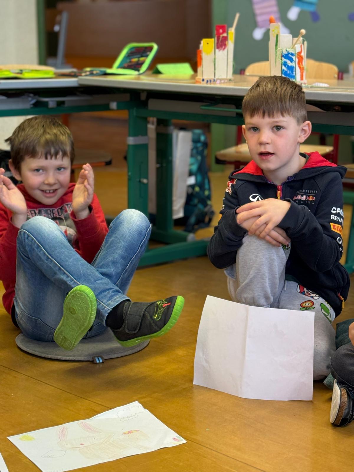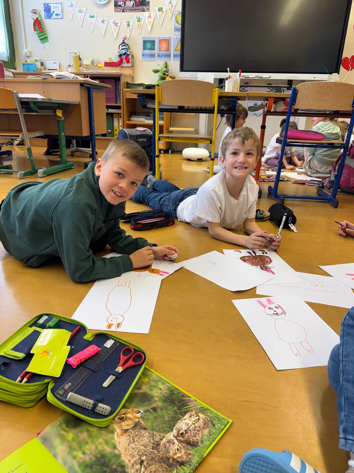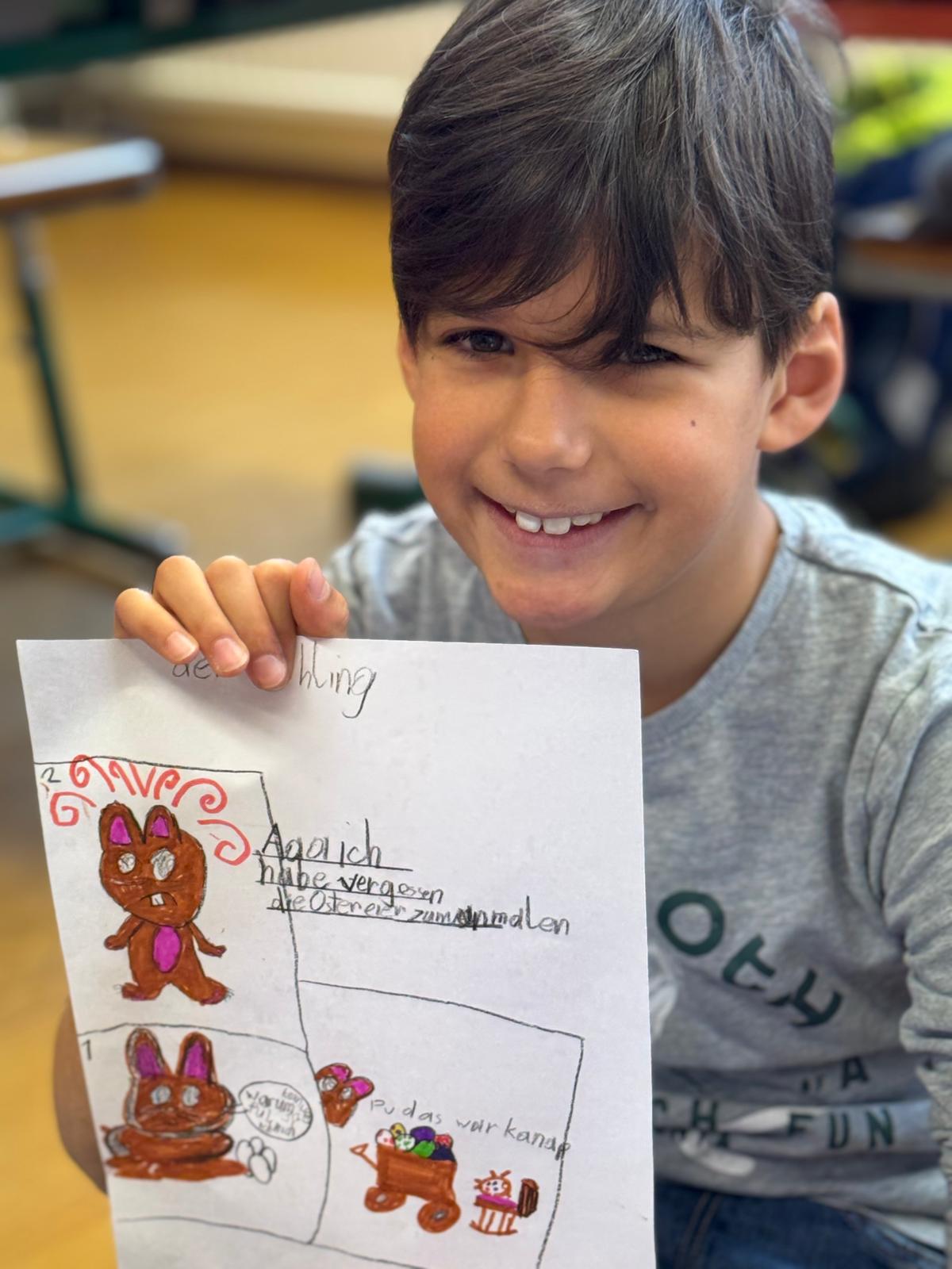 Diejenigen, die da waren, holten sich dafür umso mehr den Frühling ins Schulhaus: Mit einem Osterhasen-Comic, einer Osternestsuche sowie Spielen wie „Stadt, Land, Allerlei“ und dem Festigen des Einmaleins mit Bingo wurde gelernt, gespielt und gelacht.