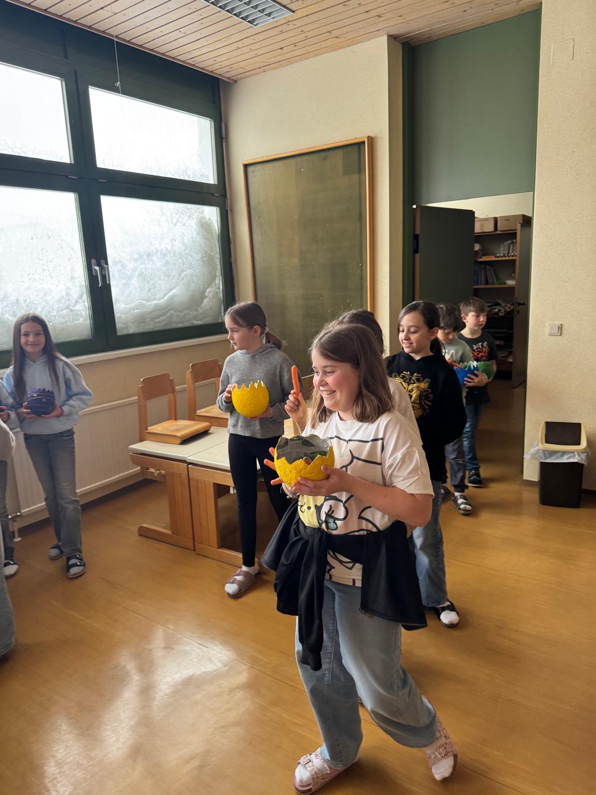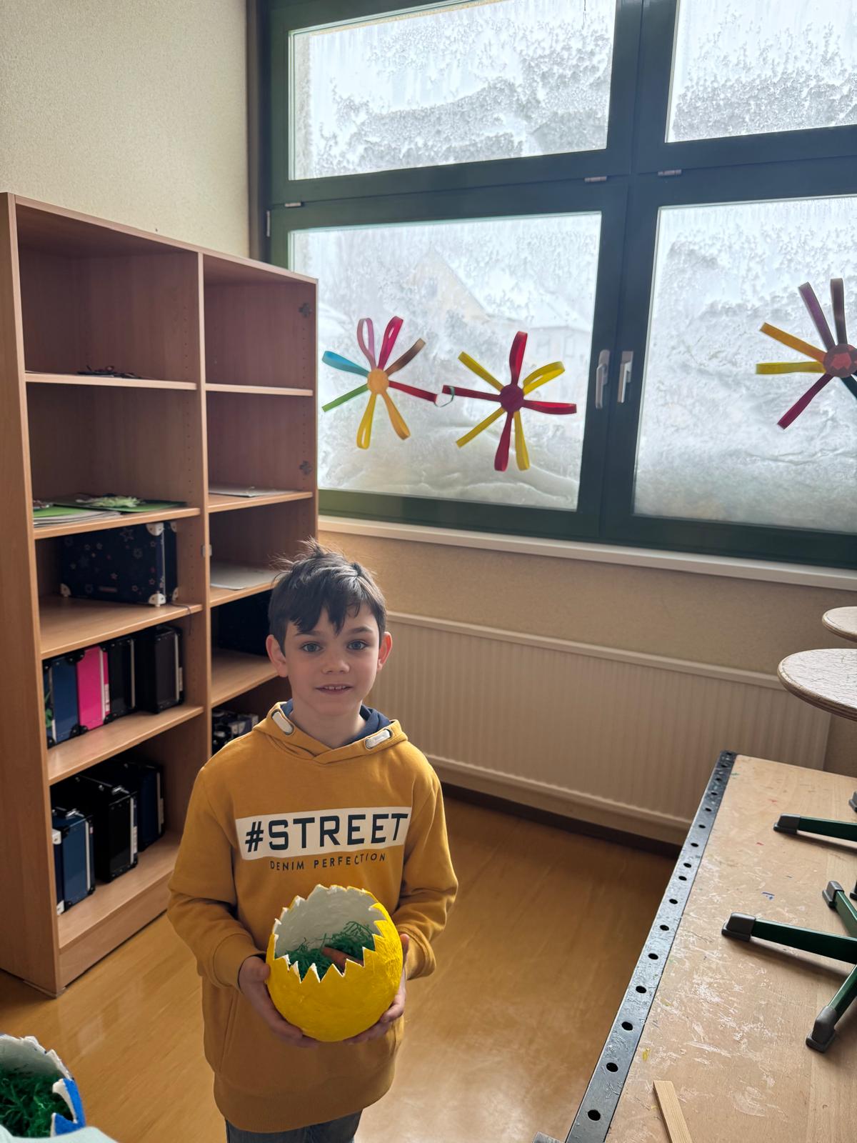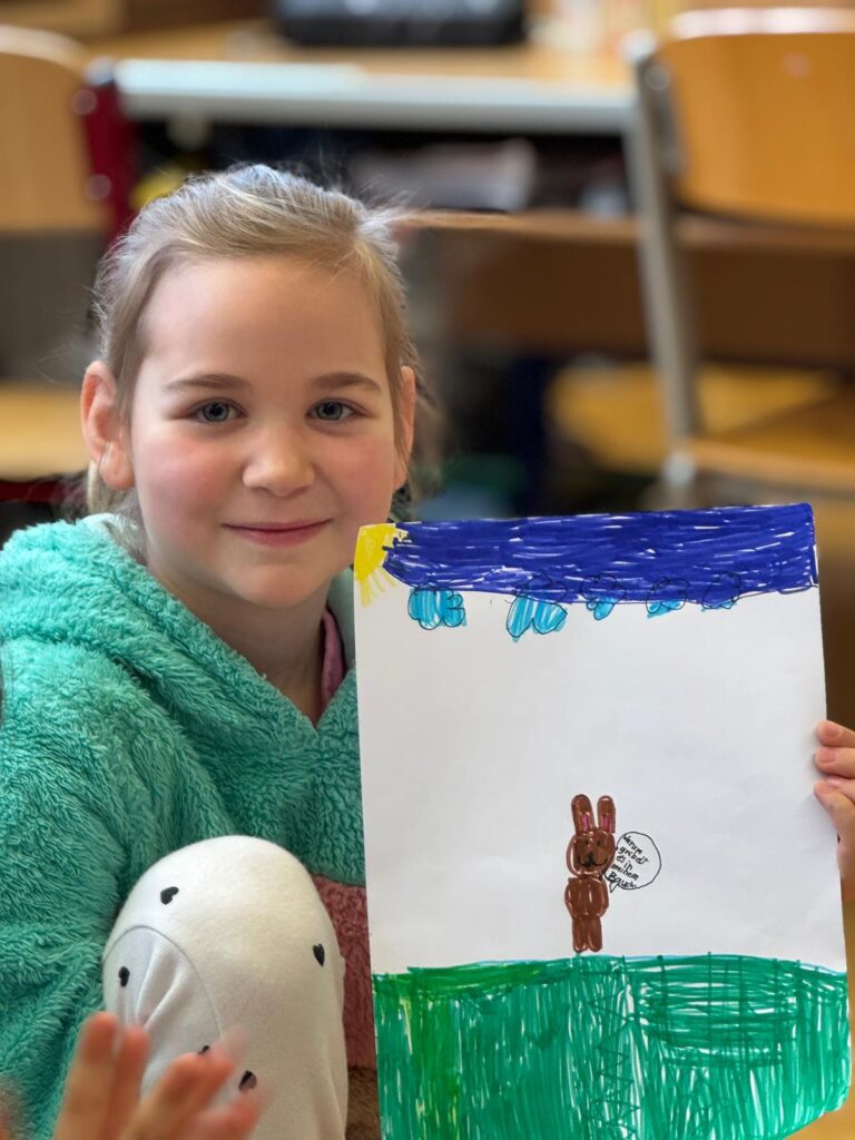 Diejenigen, die da waren, holten sich dafür umso mehr den Frühling ins Schulhaus: Mit einem Osterhasen-Comic, einer Osternestsuche sowie Spielen wie „Stadt, Land, Allerlei“ und dem Festigen des Einmaleins mit Bingo wurde gelernt, gespielt und gelacht.